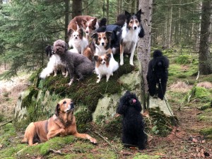 Julen är alltid en rolig tid med hund, då man gör aktiviteter som man aldrig gör annars. Tex julgranshämtning. I år var det 12 hundar och något färre 2-beningar som hjälptes åt. Vi samlade hela gänget på en sten för fotografering. En härlig bild tycker jag!